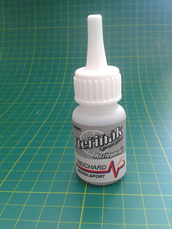 je určen k rozlepení, rozpuštění a odstranění již vytvrzeného cyanoakrylátového lepidla z kovů, dřeva, pryže, keramiky, skla ap.