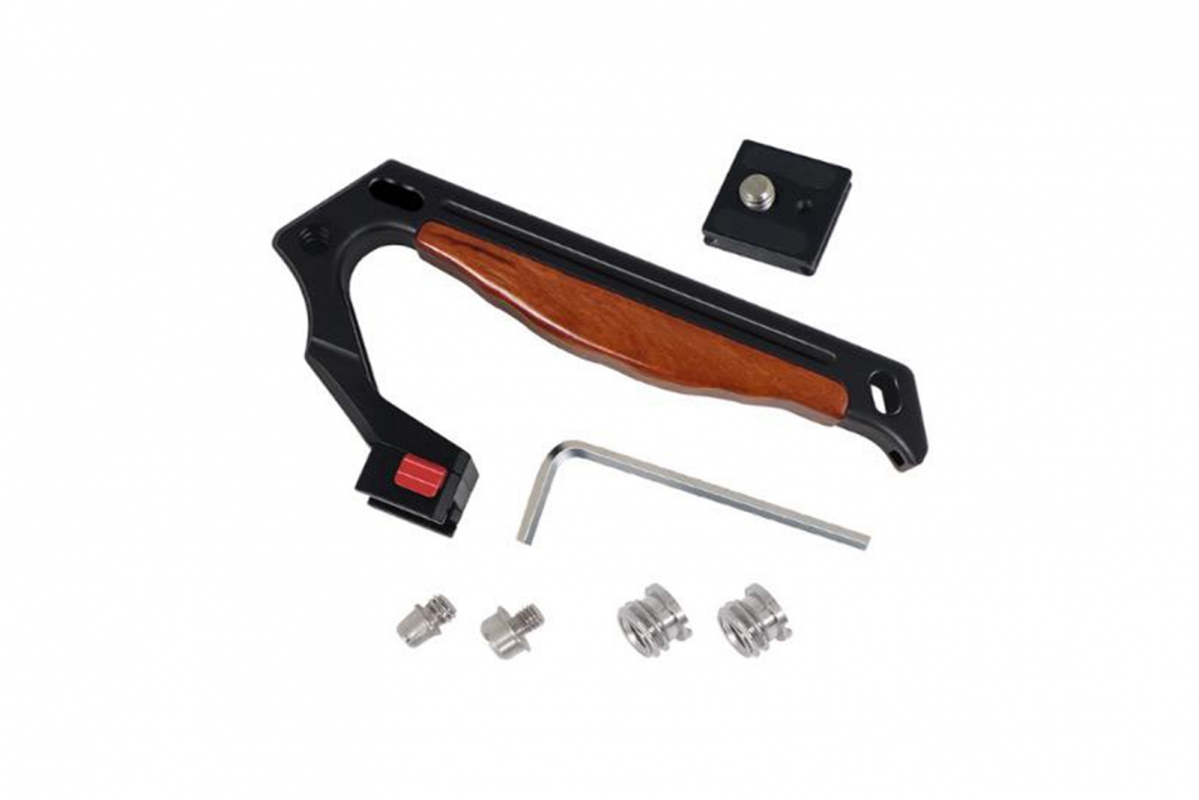 Aluminum Alloy, RosewoodWeight: 160gSize: 149 x 73 x 33mmWith 1/4inch / 3/8inch screw holes and cold shoe