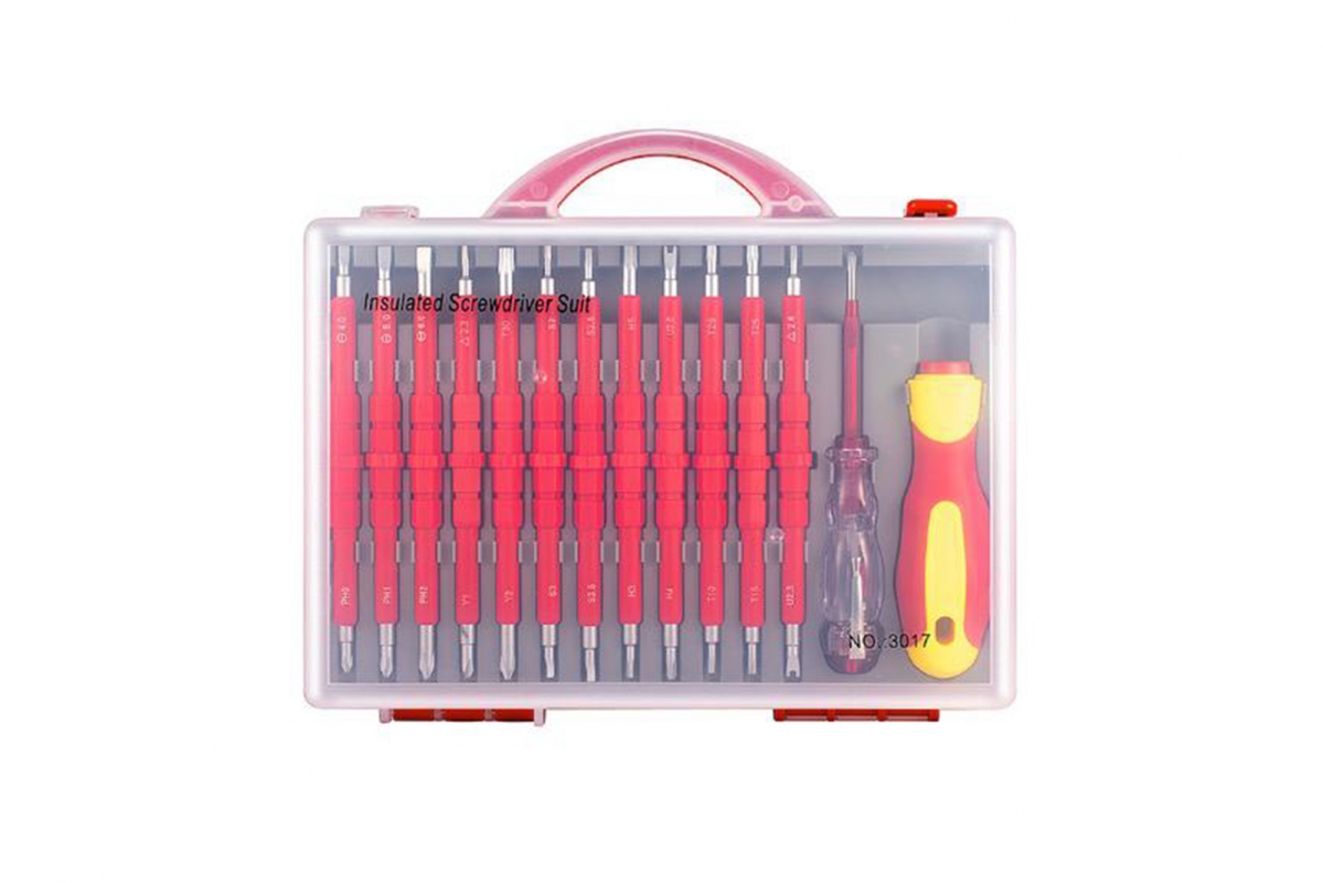 Sada izolovaných šroubováků 14v1 – univerzální nástroj pro různé typy šroubů. Vyrobeno z kvalitních materiálů TPR, PP a Cr_V pro pevnost a komfort při práci. Celková hmotnost 900 g, délka rukojeti 170 mm zajišťuje pohodlný úchop. Sada obsahuje bity: PH0-SL4, PH1-SL5, PH2-SL6, Y1-Triangle2.3, Y2-T30, S2-S3, S2.5-S3.5, H3-H5, H4-U2.6, T10-T20, T15-T25, U2.3-Triangle2.6. Ideální pomocník pro precizní opravy a údržbu elektroniky i dronů.