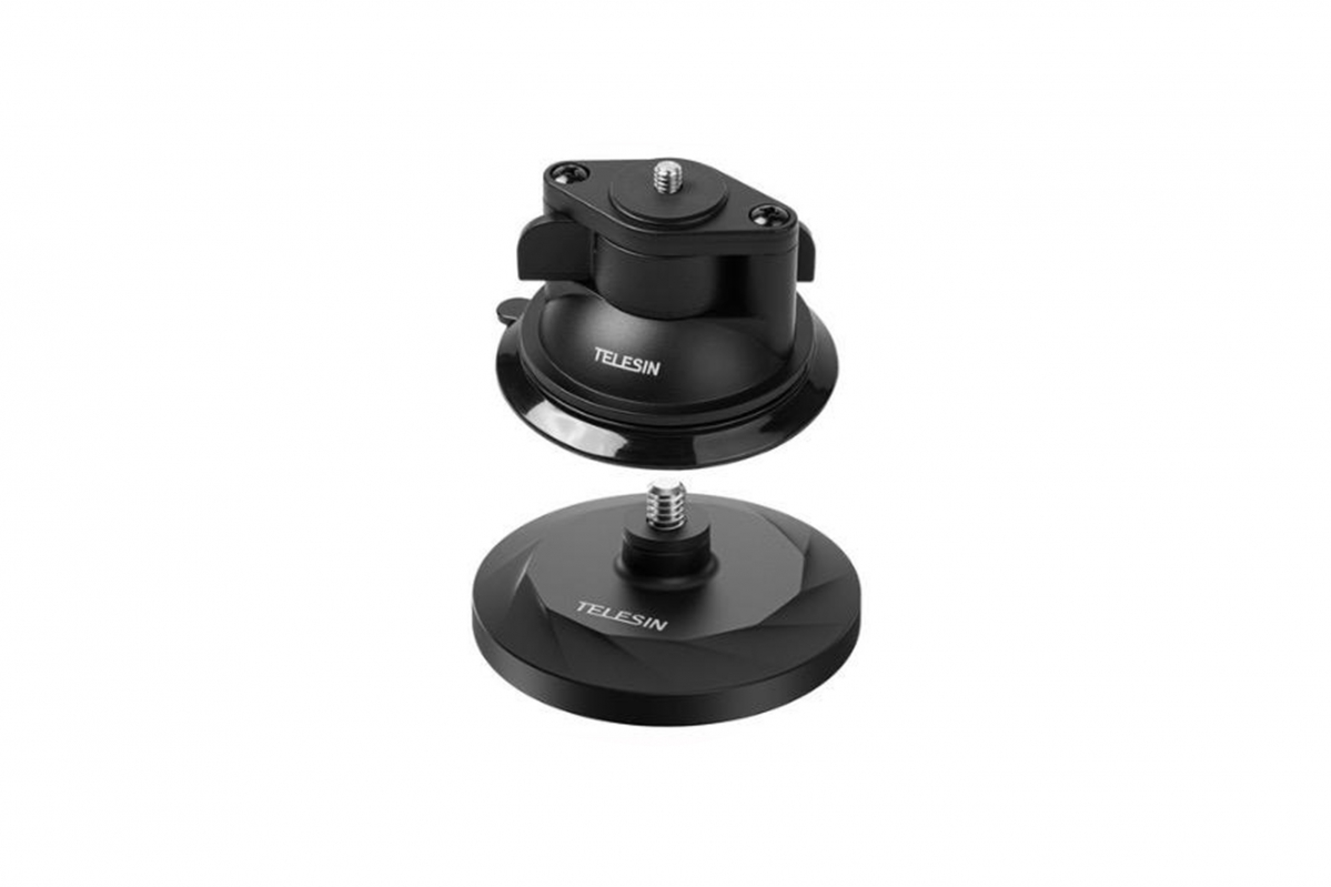 Magnetický a vozidlový držák Telesin je univerzální sada pro akční kamery a příslušenství. Vyroben z hliníkové slitiny, magnetu, nylonu, PVC a PC, váží 190 g. Magnetický držák má průměr 66,6 mm, vozidlový držák 85 mm a maximální nosnost činí 300 g. Ideální pro stabilní uchycení na kovové povrchy nebo vozidla při dynamickém natáčení.