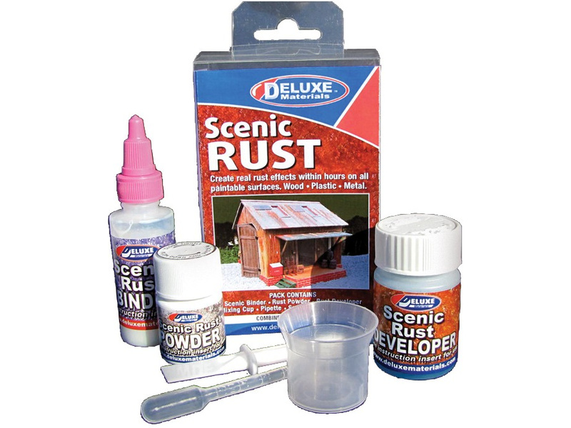 Scénická rez je speciální sada na vytvoření imitace oxidace kovů, který dokáže ztvárnit realistickou škálu různých povrchů. Sadu využijete v modelové želeniznici při tvorbě krajiny a dioramatech.