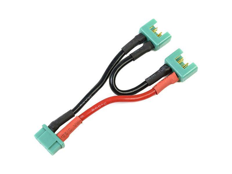 Sériový Y-kabel s konektory MPX a kabely 14AWG, délka 12cm. Dva přístrojové (pro baterie) a jeden bateriový konektor (do regulátoru). Do série se mohou zapojovat pouze akumulátory stejného typu, stejného napětí a stejné kapacity!