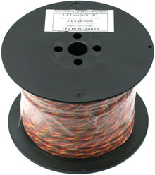 PVC-Servolitze 3-adrig verdrillt, JR/Graupner, 0,14 mm², 72 x 0,05 mm, hochflexibel, 100 m braun, rot, orange - Made in Germany
