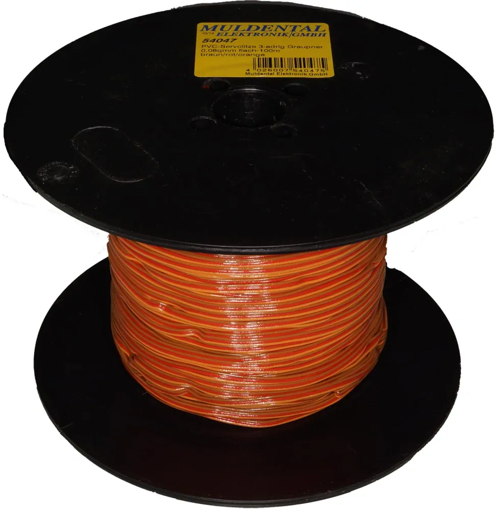 PVC izolovaný měděný trojitý flex drát, plochý | JR barva, 3 x 0,08 mm², 19 x 0,07 mm, 100 m - Made in Germany - max.: 48 V, 1,5 A