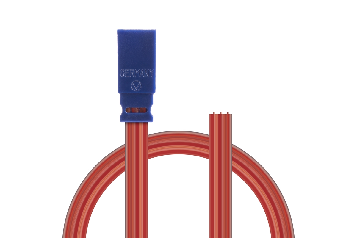 Plochý servokabel (protikus) JR o délce 300 mm se silikonovou izolací, průřez vodičů 0,25 mm2. Vyrobeno v Německu.