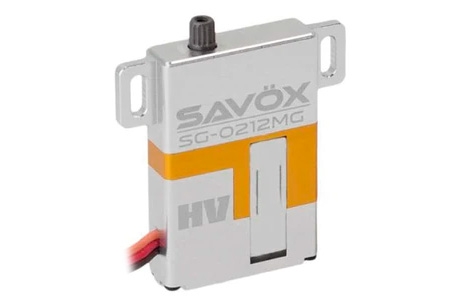 Jedná se o celohliníkové HiVolt servo Savox SG-0212MG s kovovými převody a upevňovacími patkami. Servo je speciálně navrženo pro kluzáky a větroně. Díky svému jedinečnému designu pouzdra je určen k montáži do tenkých křídel.