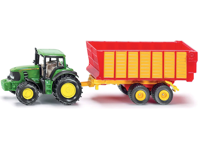 Kovový model traktoru Claas s přívěsem na siláž, délka přibližně 17 cm, měřítko 1:87. Traktor je vybaven tažným zařízením a odnímatelnou střechou. Dvounápravový přívěs s korbou je odpojitelný a má otevírací zadní čelo. Vhodné pro hraní i sběratelství. Kvalitní zpracování z kovu a plastu. Baleno v blistru.