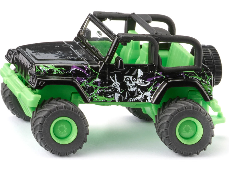 Kovový model terénního auta Jeep Big Wheel v měřítku 1:50 od značky Siku. Model má pogumované pneumatiky, zpracovaný interiér, ochranné rámy a maketu rezervního kola. Po stranách je úžasná grafika s kostlivcem. Charakteristický design, výrazná maska a terénní nárazníky dodávají modelu realistický vzhled a činí z něj skutečnou dominantu každé sbírky. Vhodné pro hraní i sběratelství. Kvalitní zpracování z kovu a plastu. Baleno v blistru.