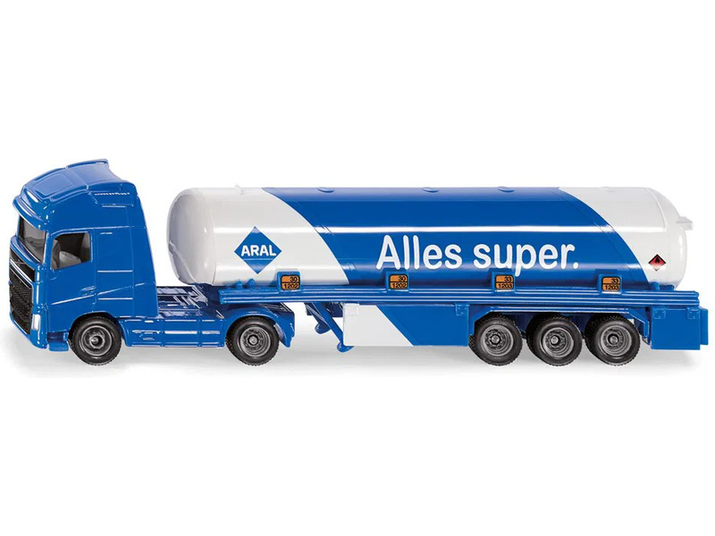 Kovový model tahače s cisternovým návěsem od značky Siku, délka přibližně 17 cm, měřítko 1:87. Tahač je vybaven čirými okny. Návěs je odpojitelný a má výklopné patky pro samostatné stání. Vhodné pro hraní i sběratelství. Kvalitní zpracování z kovu a plastu. Baleno v blistru.