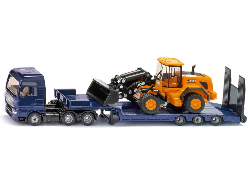 Kovový model tahače MAN s nakladačem JCB 457 WLS v měřítku 1:87 od značky Siku. Tahač obsahuje třínápravový návěs s výklopnou stojkou a sklopnými nájezdy. Nakladač má kloubové zatáčení, přední pohyblivé rameno s výklopnou lžící a maketami pístů, pogumovaná kola. Vhodné pro hraní i sběratelství. Kvalitní zpracování z kovu a plastu.