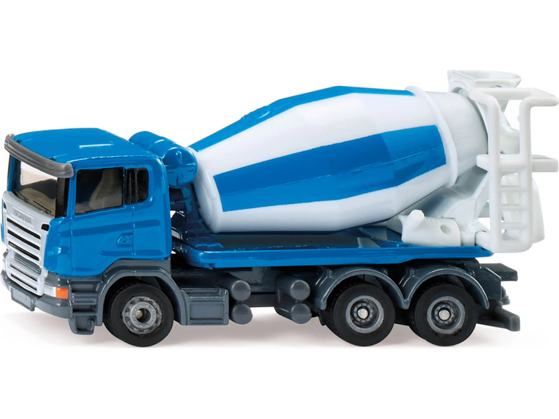 Kovový model domíchávače betonu v měřítku 1:87 od značky Siku. Model s nástavbou Liebherr na 3nápravovém podvozku Scania s modrou kabinou. Míchací válec lze otáčet. Nástavbu lze jako herní funkci naklonit. Pneumatiky jsou gumové. Vhodné pro hraní i sběratelství. Kvalitní zpracování z kovu a plastu.