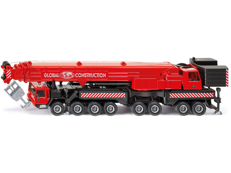 Kovový model teleskopického autojeřábu v měřítku 1:55 od značky Siku. Osminápravový model s pogumovanými koly má vyklápěcí teleskopické podpěry se šroubením, 97 cm dlouhé zvedací teleskopické rameno s maketou hydraulických pístů a manuální naviják pro hák. Vhodné pro hraní i sběratelství. Kvalitní zpracování z kovu a plastu.