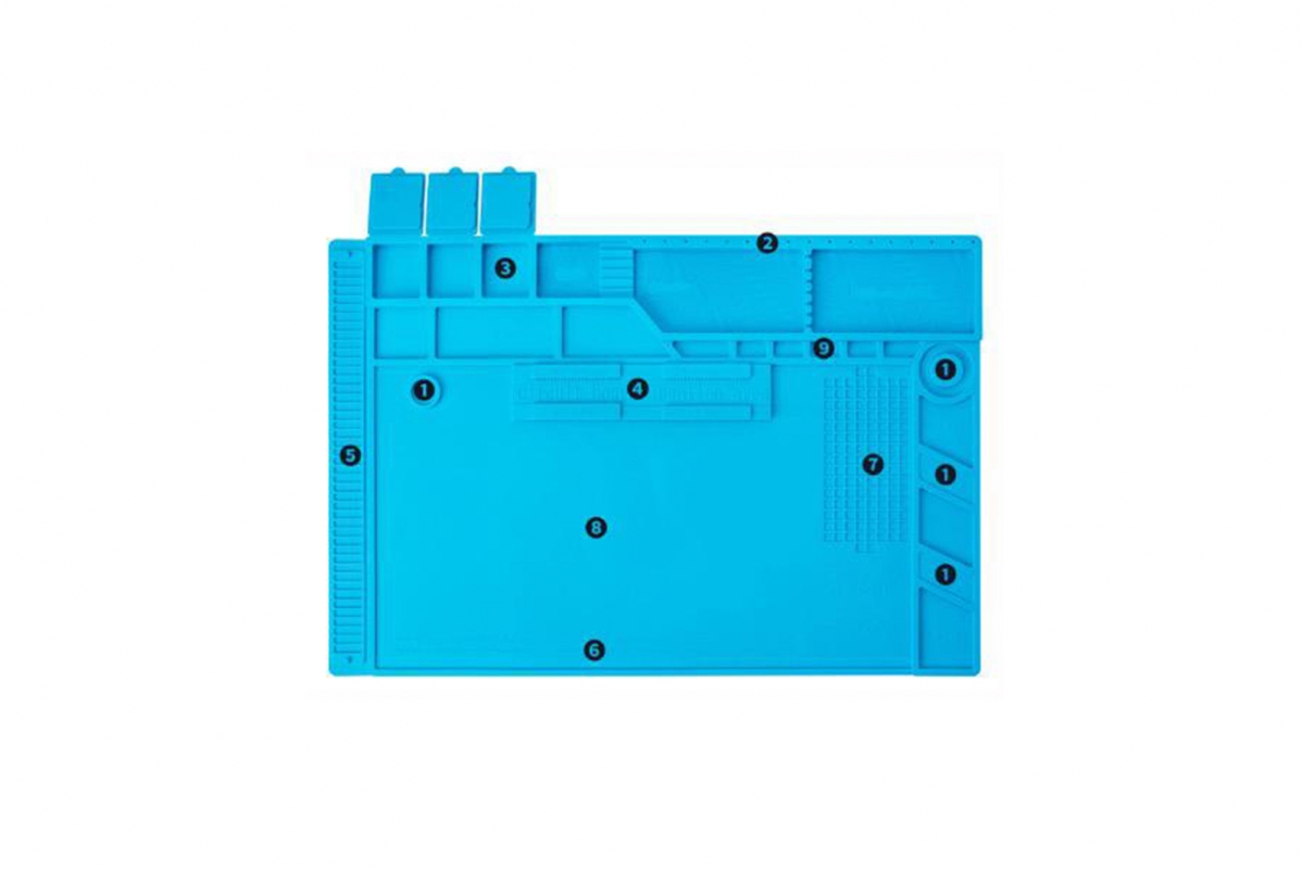 Antistatická silikonová podložka pro opravy v modré barvě je praktickým pomocníkem při práci s elektronikou. Je vyrobena ze silikonu a obsahuje magnetickou oblast pro uchycení drobných kovových součástek. Podložka má rozměry 450 × 300 mm, tloušťku 10 mm a hmotnost 739 g. Je odolná vůči teplu, neklouzavá a snadno se čistí. Ideální pro servisní techniky, kutily i domácí dílny, kde zajišťuje přehlednost, pořádek a bezpečnou manipulaci s elektronickými součástkami.