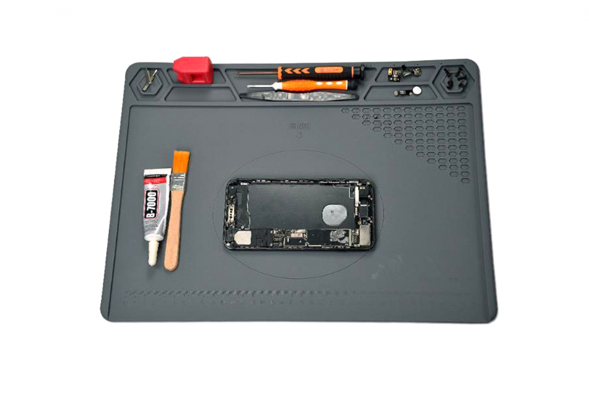 Šedá silikonová opravárenská podložka s magnetickou zónou o rozměrech 40 × 29 cm. Vyrobena z teplu odolného a antistatického silikonu s integrovanými magnety pro bezpečné uchycení šroubků a drobných kovových dílů. Hmotnost 350 g. Vhodná pro přesné opravy elektroniky, jako jsou mobilní telefony, tablety, notebooky a další zařízení citlivá na statickou elektřinu.