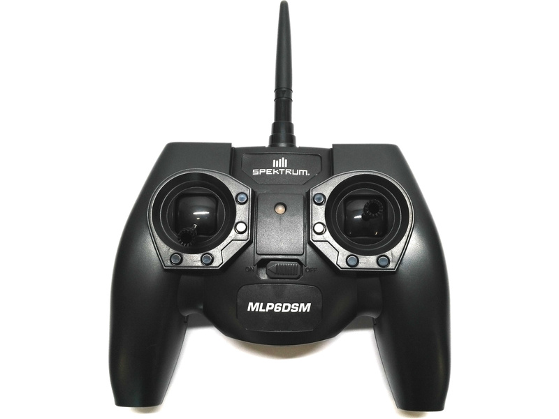 Nová verze šesti-kanálového vysílače Spektrum MLP6 v módu 2 (plyn na levé ruce) pro menší modely od Horizon Hobby. Vysílač má telemetrií, pomocí LED diody a zvukové signalizace zobrazuje napětí pohonného akumulátoru u kompatibilních modelů.