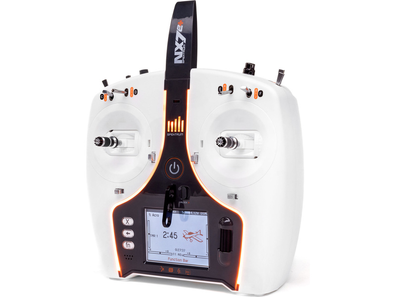 Vysílač Spektrum NX7e+ DSMX se 14 kanály je určen pro začínající i pokročilé piloty. Nabízí moderní technologii DSMX®, exkluzivní software Spektrum AirWare™ a mnoho dalších funkcí. Má barevný displej, LiIon baterii, kompatibilitu Smart, port USB a Micro SD. Nové funkce nastavení.