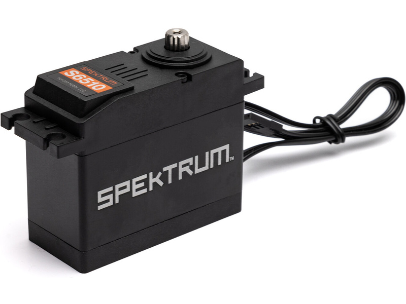 Spektrum digitální servo S6510 pro RC modely aut v měřítku 1:5. High Torque. Moment 53kg.cm @ 8,4V, hmotnost 204g, délka 66mm, šířka 30mm, výška 58mm, tisícihran 15T. Napájení 6.0 - 7.4V (HV), kovové převody, dvojice ložisek. Výborná náhrada serv S905 nebo S906, jako je ARRMA 1/5 Kraton 4WD BLX Monster Truck, Losi 1/6 Super Baja Rey, pro crawlery Axial 1/6 SCX6 a další.