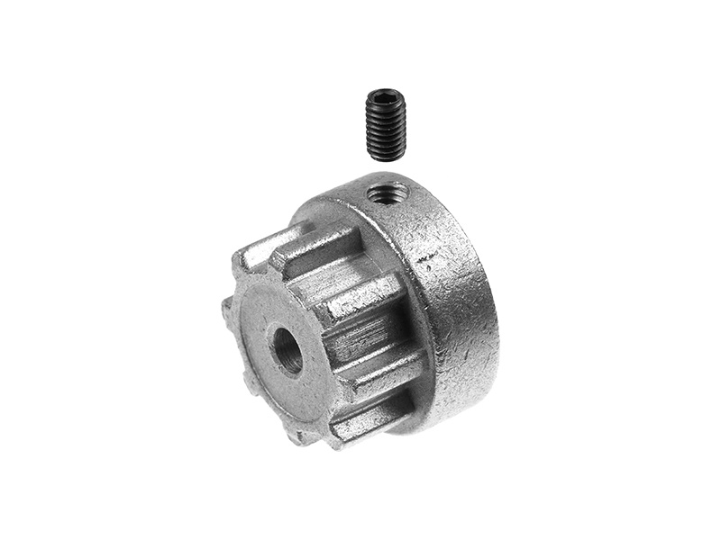 Spojka hřídelí adaptér Flex kovový, průměr 18mm, délka 12mm, vnější průměr ozubení 15,4mm, vnitřní 11,8mm, otvor 3mm, pojištění červíkem M3. Pro pružnou Spojku hřídelí Flex 18 .