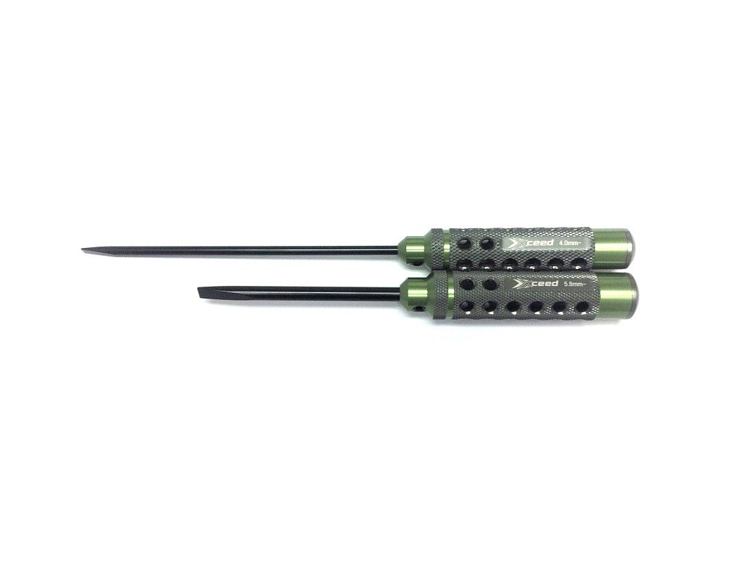 Toto je kombinovaná sada Xceed plochých šroubováků (2 ks.) s novým vzhledem a novým designem. Díky poutavým 2 barevným tónům (zelená a šedý kov) z eloxovaného dutého hliníkového designu rukojeti a špičkám HSS, které poskytují příjemně vypadající, pohodlný a lehčí pocit. Také díky nim jsou odolnější a zároveň zajišťují dobrou přilnavost k hlavě šroubu.