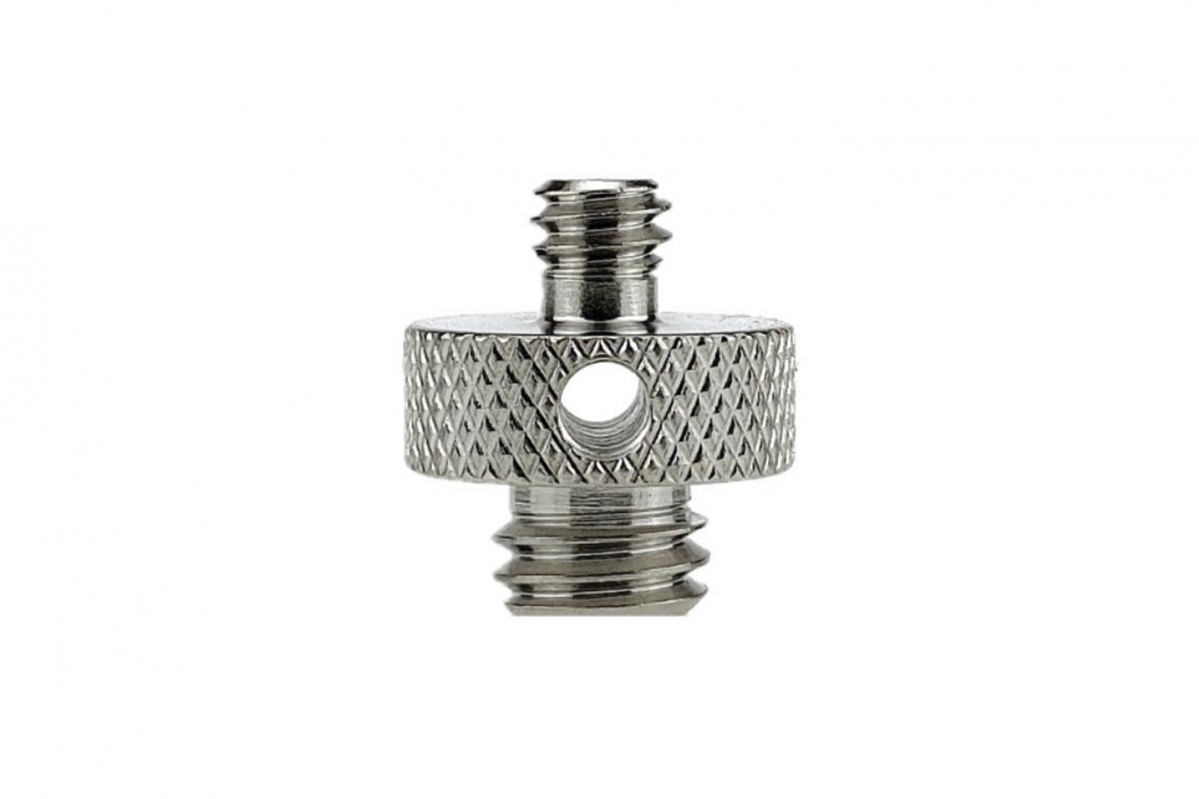 Nerezový adaptér šroubu 1/4" samec na 3/8" samec s niklovou povrchovou úpravou pro zvýšenou odolnost proti korozi. Váží 12 g, průměr otvoru 3,5 mm. Perfektní pro pevné a spolehlivé spojení různých typů foto a video vybavení v náročných podmínkách.