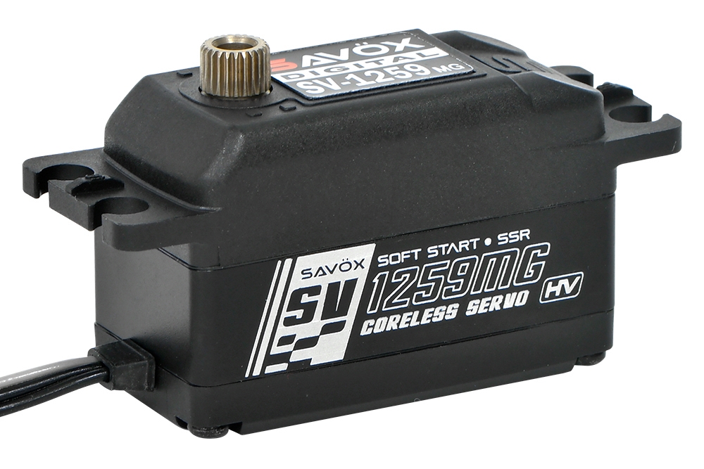 Savöx SV-1259MG je výkonné nízkoprofilové servo pro závody 1/10 nebo modely s omezeným prostorem.