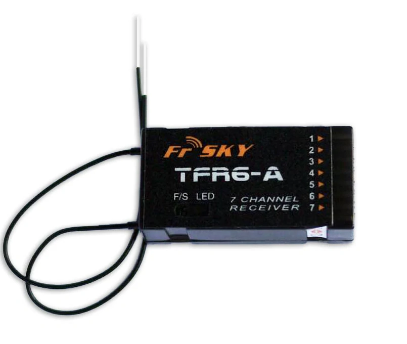 TFR6-A je velmi kvalitní 7kanálový přijímač, který je kompatibilní s vysílači Futaba řady FASST. Orientace pinu pro připojení serv umožňuje ještě kompaktnější instalaci. TFR6 podporuje dvě volitelné možnosti nastavení zabezpečení proti selhání, buď nastavení bezpečných pozic pro každý kanál na vašem vysílači, nebo nastavení zabezpečení proti selhání na TFR6. Funkce Failsafe je podporována pro všechny kanály.
