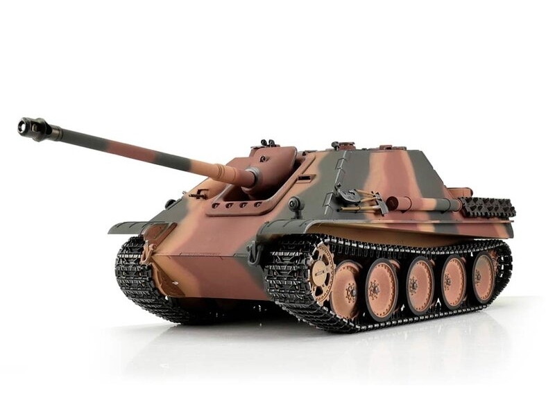 S hmotností kolem šest kilogramů je Jagdpanther ideální pro náročného zákazníka. V profesionální edici se vyznačuje vynikající kvalitou barvy airbrush, technologií desek plošných spojů 2,4 GHz a novým reproduktorem. Tento model má vynikající jízdní vlastnosti, širokou škálu funkcí a realistický zvuk. Vysoce kvalitní pásy, hnací a vodicí kola s válečky, stejně jako spodní část trupu a bojová věž jsou vyrobeny z kovu. Mnoho malých dílů a různých samolepek dokonale završuje repliku věrného měřítka.