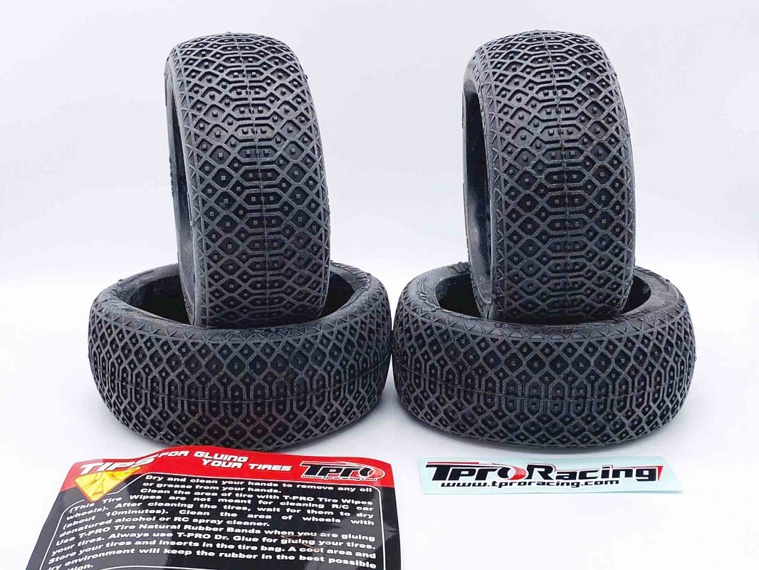 Naše pneumatiky TPRO jsou k dispozici ve 2 různých typech. Jednak jako nelepené pneumatiky v sadě po 4 kusech, nebo jako hotové lepené pneumatiky v páru po 2 kusech. U lepených kol se používá naše modrá vložka TPRO ve střední barvě (TP1309I3) a bílé disky v měkké verzi (TP100011SWH).