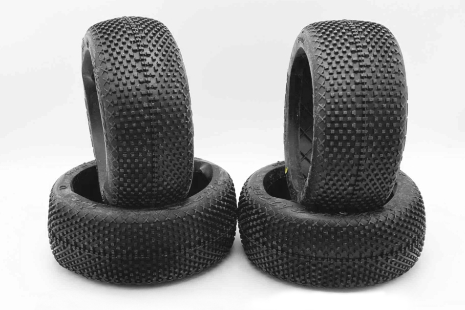 Naše pneumatiky TPRO jsou k dispozici ve 2 různých typech. Jednak jako nelepené pneumatiky v sadě po 4 kusech, nebo jako hotové lepené pneumatiky v páru po 2 kusech. U lepených kol se používá naše modrá vložka TPRO ve střední barvě (TP1309I3) a bílé disky v měkké verzi (TP100011SWH).