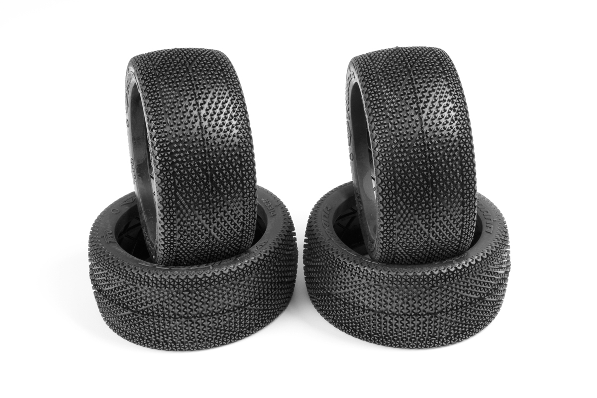 Naše pneumatiky TPRO jsou k dispozici ve 2 různých typech. Jednak jako nelepené pneumatiky v sadě po 4 kusech, nebo jako hotové lepené pneumatiky v páru po 2 kusech. U lepených kol se používá naše modrá vložka TPRO ve střední barvě (TP1309I3) a bílé disky v měkké verzi (TP100011SWH).