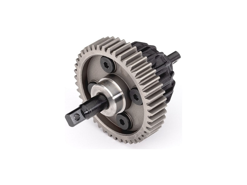 Traxxas diferenciál centrální - kompletní, pro vysokou odolnost a výbornou distribuci výkonu, ocelové čelní ozubené kolo, 44 zubů, modul ozubení M1, naplněný vazelínou 20M cSt. Diferenciál zvyšuje trakci předních kol.