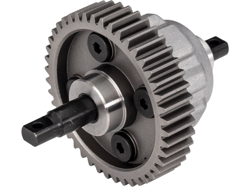 Traxxas diferenciální centrální (určeno pro Maxx, Maxx Slash). Diferenciál s hliníkovou krabičkou, naplněný olejem 100 000cSt. Diferenciál pohlcuje rázy hnacího ústrojí, čímž zlepšuje odolnost a rovnoměrně rozděluje výkon. Ocelové kolo 44T 1M.