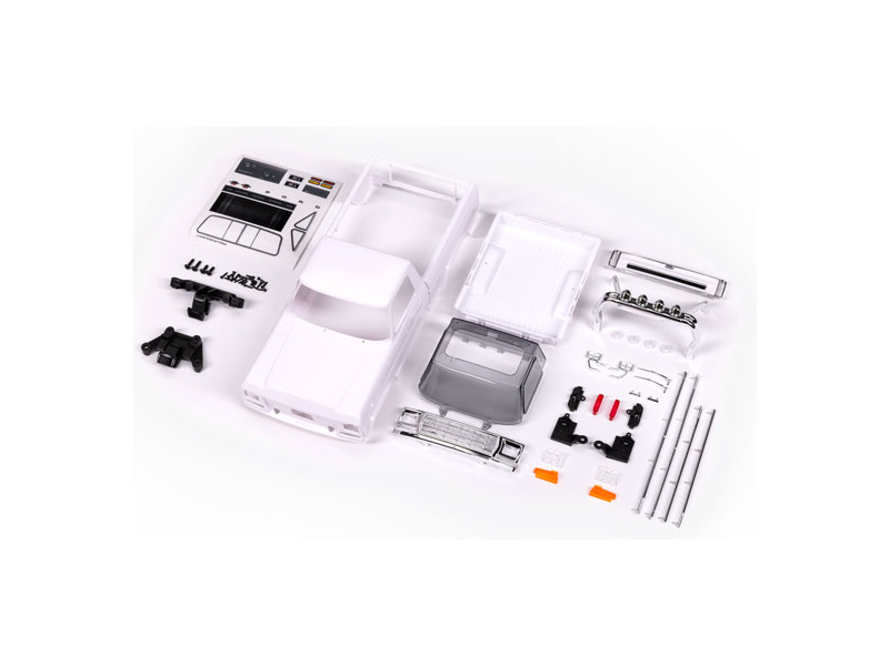 Traxxas karosérie Ford F-150 1979 nenabarvená bílá, kompletní (nesestavená), pro RC model auta TRX-4M s delším rozvorem 162 mm (High Trail). Bez-sponková karoserie v měřítku 1:18 z ABS, včetně mřížky chladiče, zrcátek, klik dveří, ochranného rámu, stěračů, bočních lišt a dalších detailů. Vyžaduje přední a zadní nárazník TRA9834.
