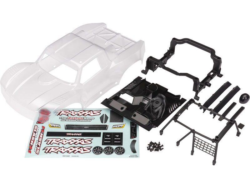 Náhradní díl pro RC model auta 1:12 Traxxas Mini Slash: karosérie Mini Slash čirá. Vyžaduje barvení a dokončení. Včetně dílů kokpitu a bezsponkového uchycení. Arch samolepek.