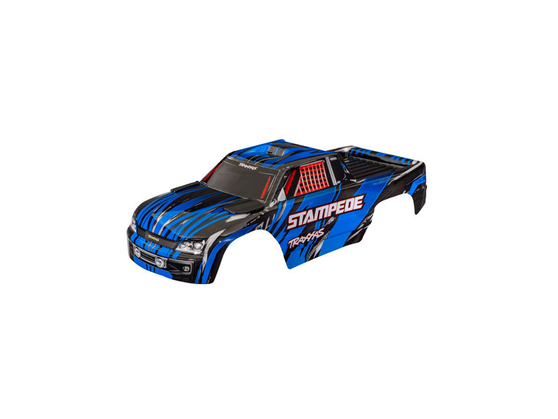 Traxxas karosérie Stampede modrá (bezsponková), hotová nabarvená, aplikované obtisky. Vhodná i pro Stampede VXL. Včetně předního a zadního bezsponkového držáku karoserie.