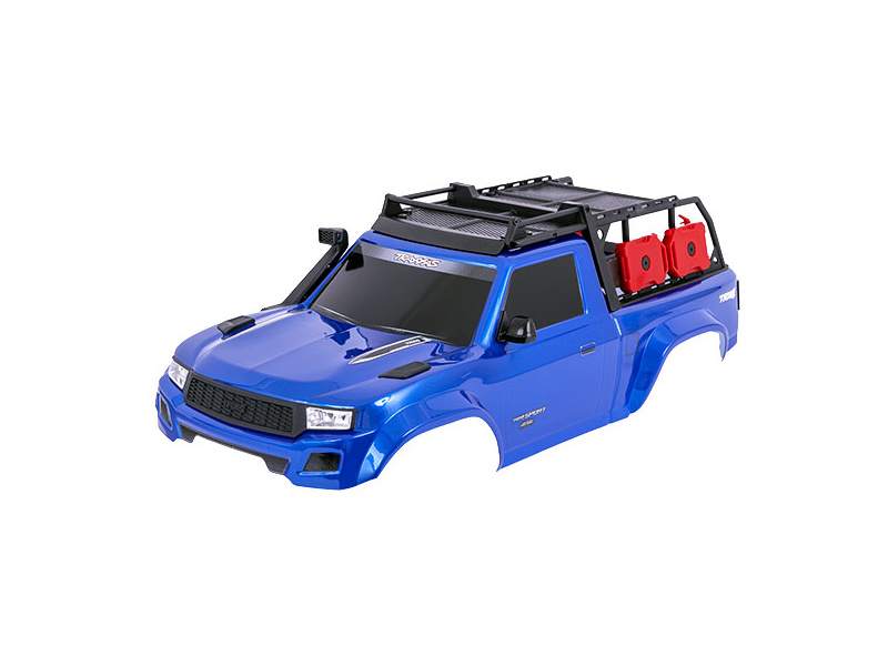 Traxxas karosérie TRX-4 Sport modrá. Kompletní nabarvená karoserie, včetně mřížky chladiče, zrcátek, klik dveří, stěrače, expedičního střešního nosiče a s bezsponkovým systémem uchycení. Určeno pro montáž na #8080X.