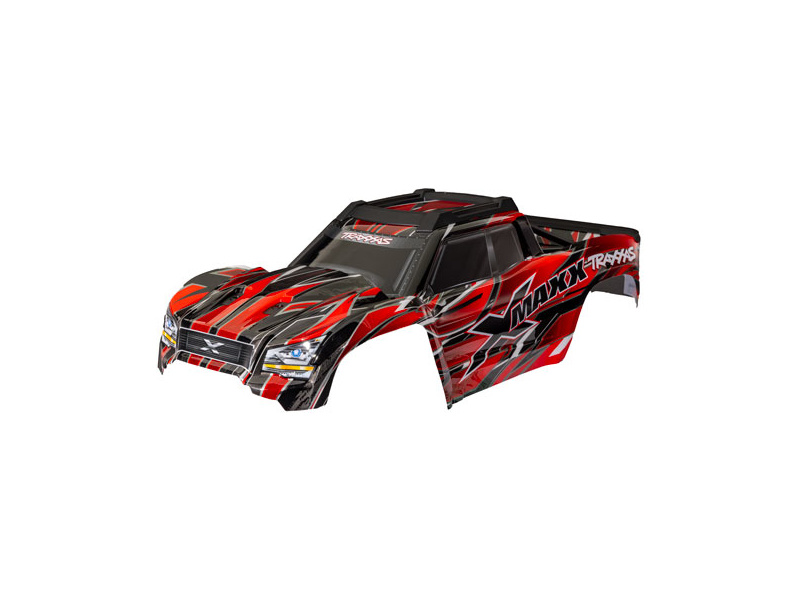Traxxas karosérie X-Maxx červená - hotová nabarvená karoserie, z odolného polykarbonátu, aplikované obtisky. Včetně vnitřního rámu a ochranných prvků. Pro Traxxas X-Maxx.