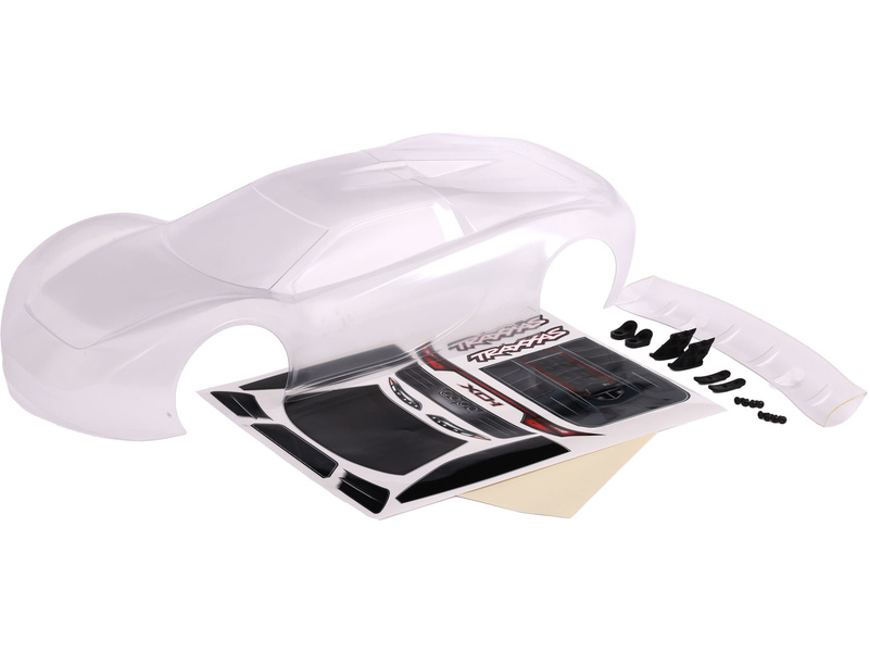Traxxas karosérie XO-1 čirá (pro XO-1 V2) - vyžaduje barvení. Včetně křídla s držákem, arch samolepek.