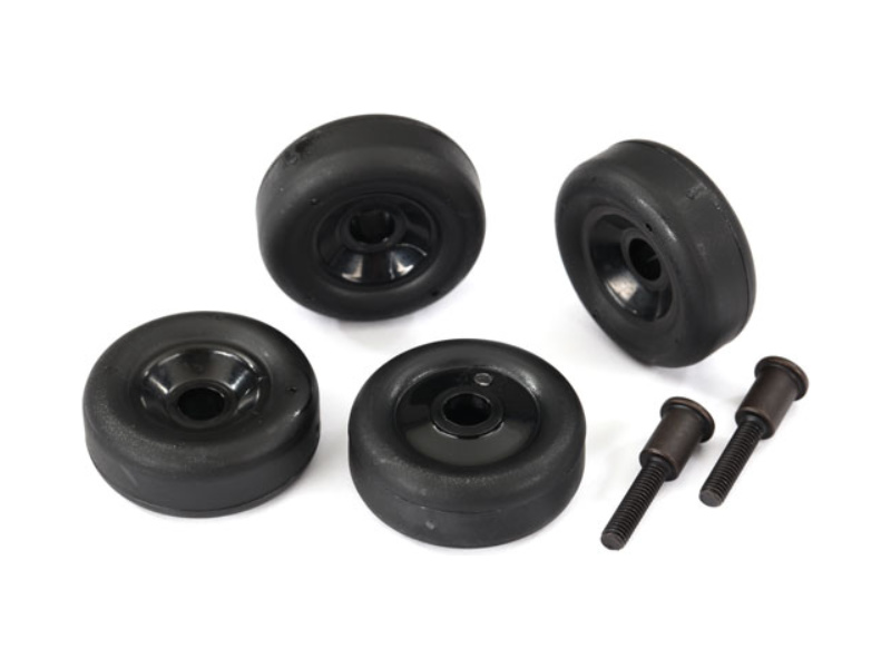 Náhradní díl pro RC modely aut Traxxas 1:10 a 1:12: kola s osami wheelie - podpůrné kolečka proti převržení při akceleraci. 4ks v balení.