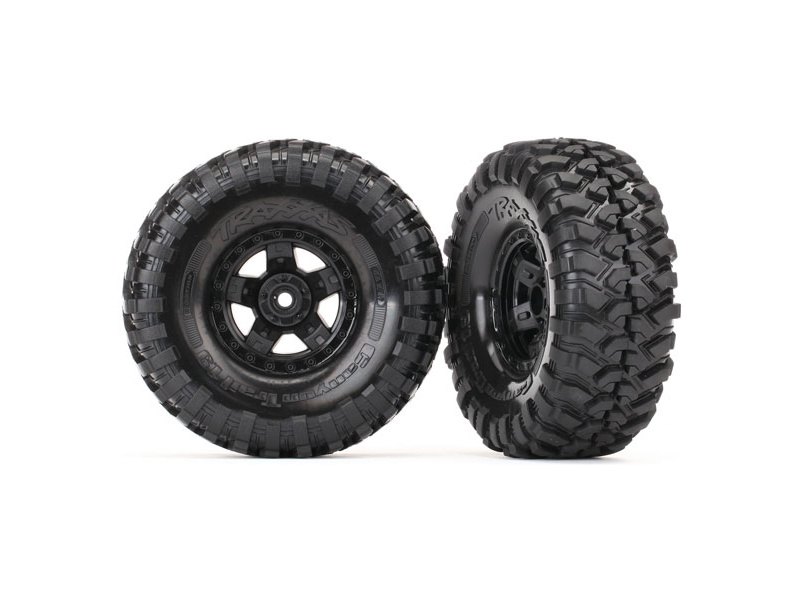 Kompletní univerzální kola pro RC modely aut TRX-4. Černé Disky TRX-4 Sport s pneumatikami Canyon Trail (2 ks v balení).
