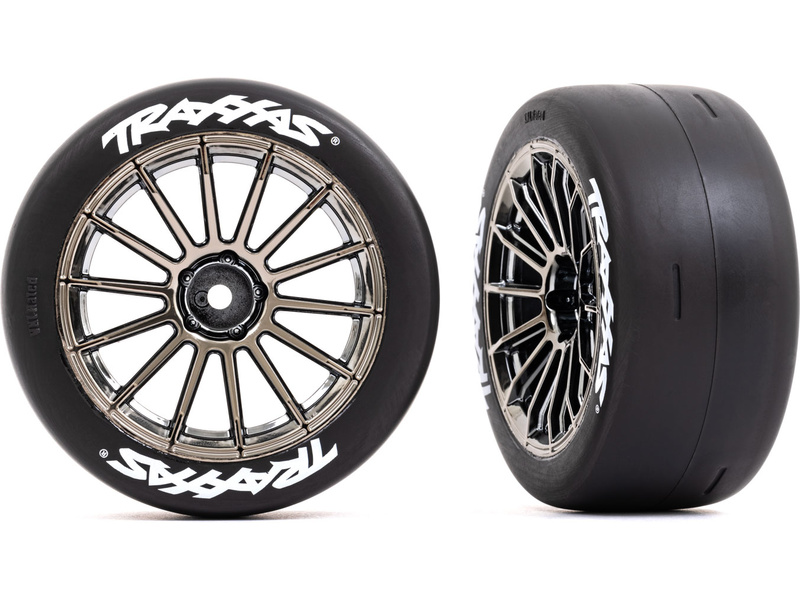 Traxxas kolo 2.0", disk multi-spoke černý chrom, pneu slick (zadní) (2). Pro podvozek Traxxas 4-Tec 3.0.