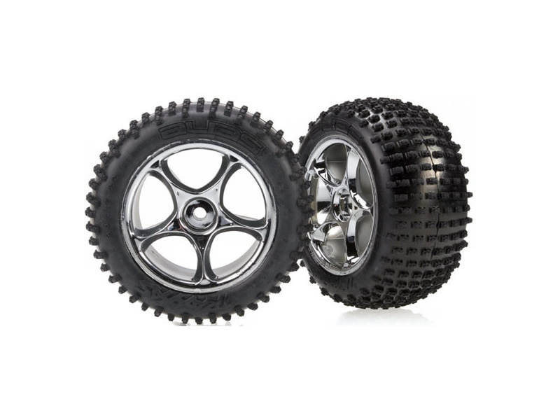 Kompletní kola pro RC modely aut. Chromované disky s pneumatikami Alias (2 ks v balení).