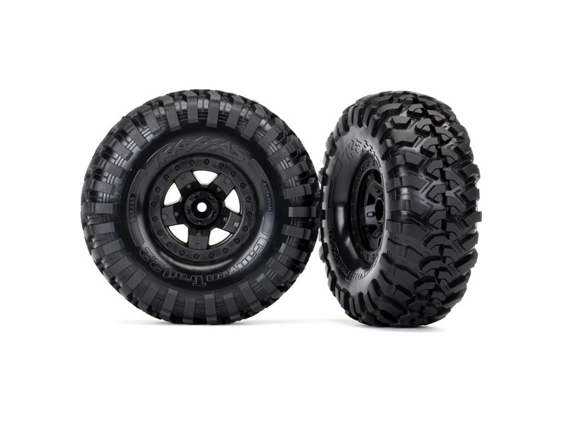 Kompletní univerzální kola pro RC modely aut TRX-4. Černé Disky TRX-4 Sport s pneumatikami Canyon Trail (2 ks v balení).