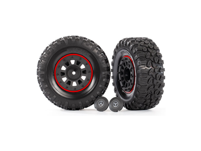 Náhradní díl pro RC modely aut Traxxas TRX6 Ultimate, Mercedes G63: kolo 2.2" s kroužky (2 ks), nalepené pneumatiky. Určeno pro montáž na hřídel TRA8255A.