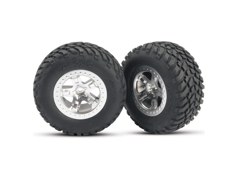 Kompletní přední kola pro 2WD auta Traxxas Slash. Saténový disky s nalepenými pneumatikami Off-Road a vložkou. Rozměr disku 61/81x42 mm. Celkový rozměr 110x46 mm. Unašeč je šestihran 12mm s offsetem 22 mm.
