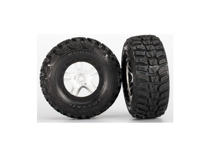 Kompletní univerzální kola pro RC auto Traxxas Slayer. Saténové disky s černými ráfky Bed Lock s nalepenými pneumatikami Kumho z ultra měkké směsi (S1) a vložkou. Rozměr disku 61/81x42 mm. Celkový rozměr 110x46 mm. Unašeč je šestihran 12mm s offsetem 30 mm.
