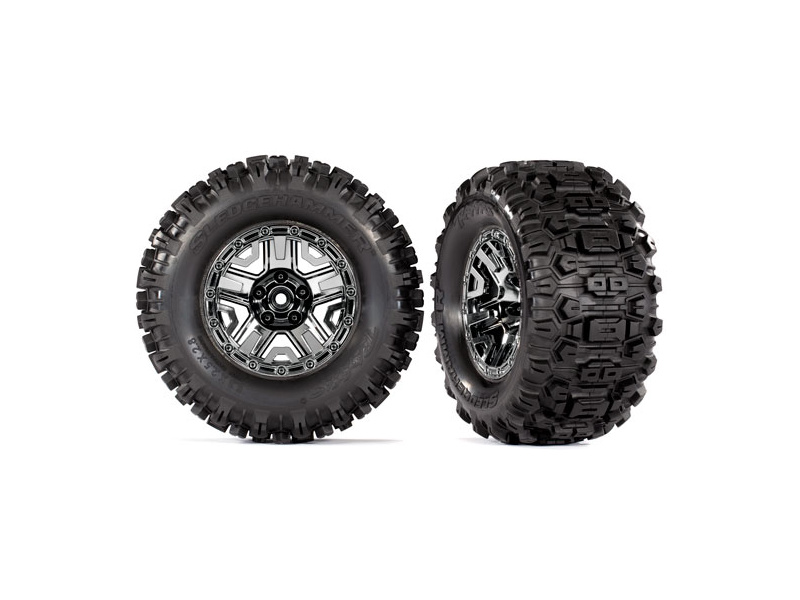 Traxxas kolo 2.8", disk černý chrom, pneu Sledgehammer (2). Pro unašeč 12 mm.