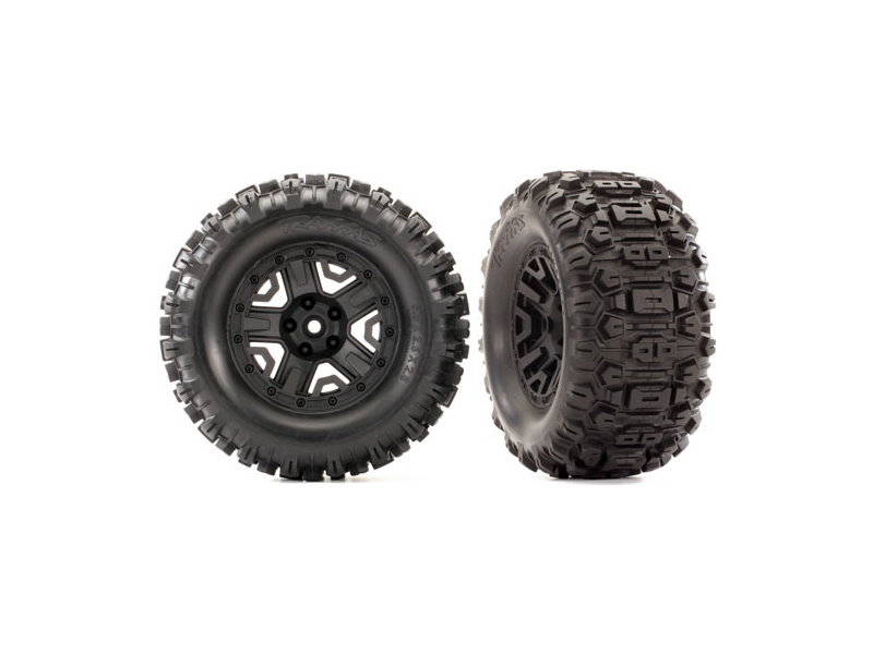 Traxxas kolo 2.8", pneu Sledgehammer , disk černý (2) - nalepené pneumatiky s pěnovou vložkou na discích.