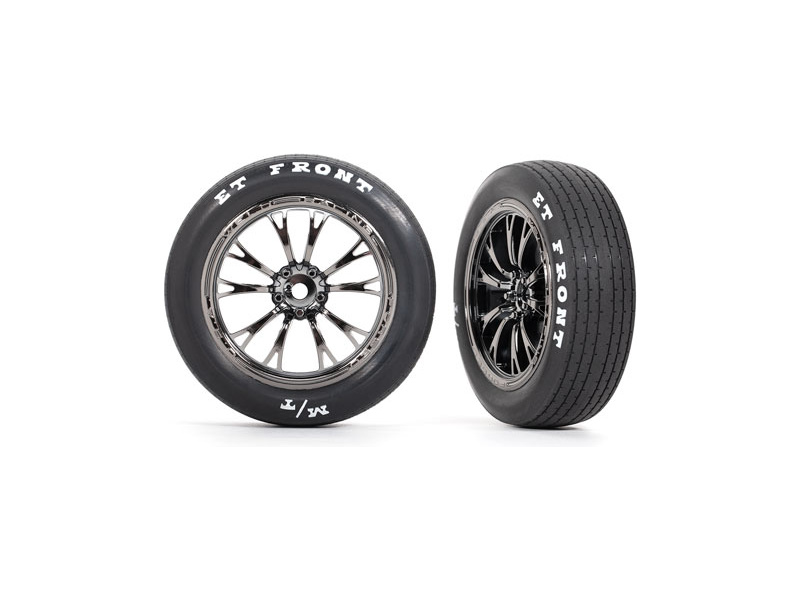 Traxxas kolo, disk Weld chromovaný černý (přední) (2 ks) s pěnovou vložkou a nalepenými pneumatikami. Přední dragsterová kola Mickey Thompson jsou replikou skutečných pneumatik. Speciálně vyvinutá směs pneumatik pro dlouhou životnost a maximální přilnavost.