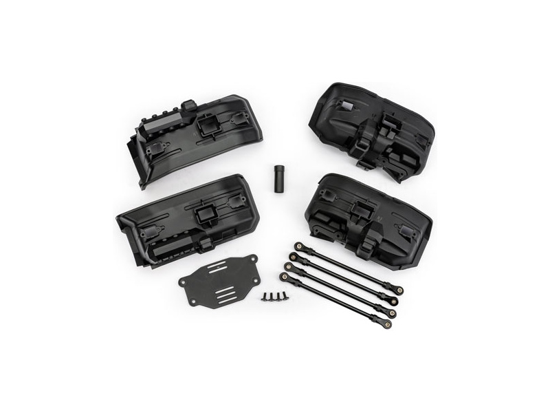 Konverzní sada pro podvozek Traxxas TRX-4 umožňující zmenšení rozvoru kol z 324 mm na rozvor 312 mm. Určeno pro bezsponkový systém uchycení karoserie. Obsahuje zadní horní a dolní závěsné tyče, blatníky s bezsponkovým systémem, vnější díl kardanové hřídele, upravený držák akumulátoru a spojovací materiál.